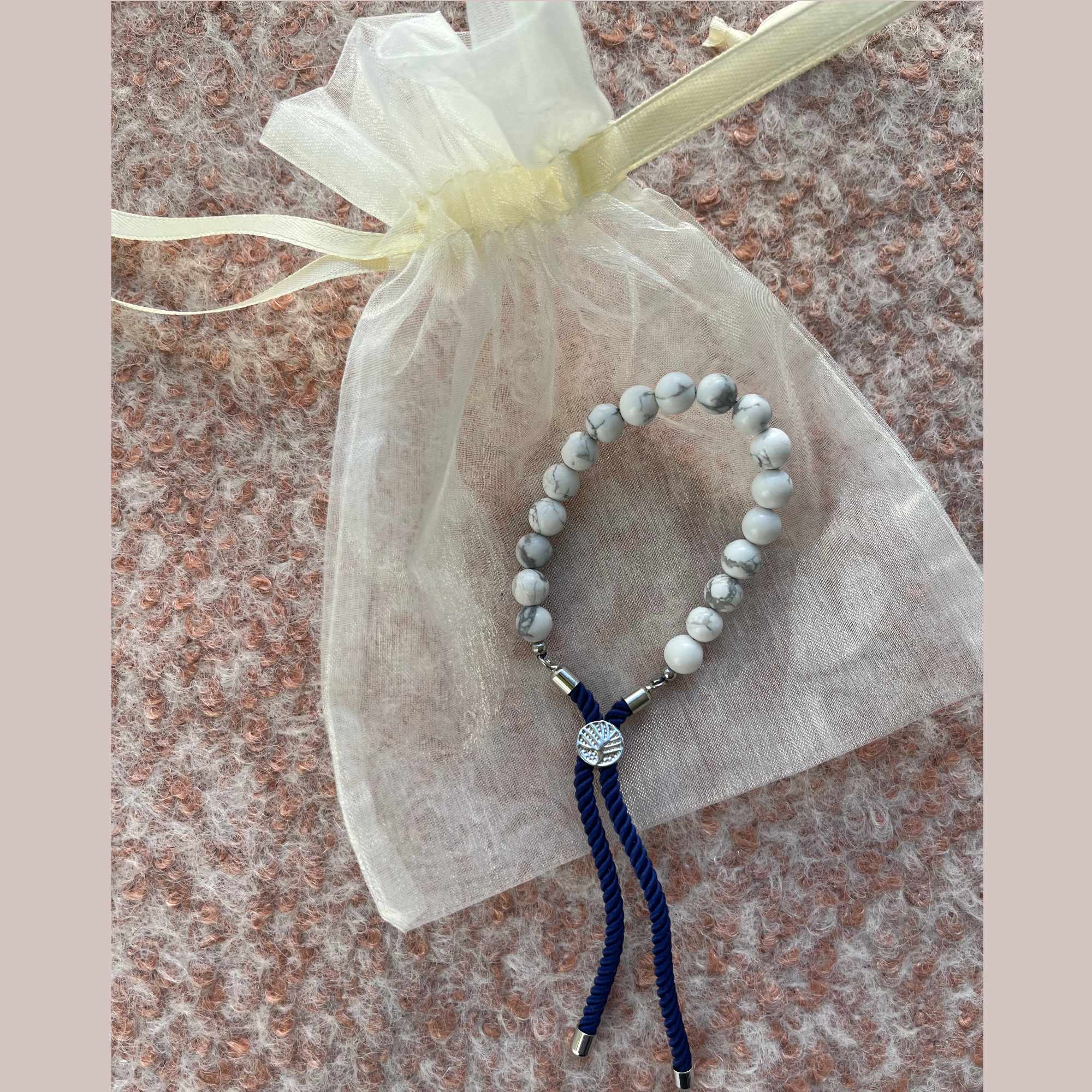 White Howlite bracelted with 925 Silver-plated sliding toggle which allows you to adjust the bracelet for a snug fit.
