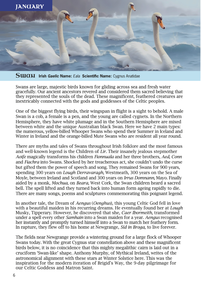 The 2026 Diary-Journal is A5 format, wire-bound and displays 2 days per page and provides ample space to plan your important dates and journal daily. This year we feature the Bird's of Ireland, their history as a species and their links to many Irish Celtic legends and stories.