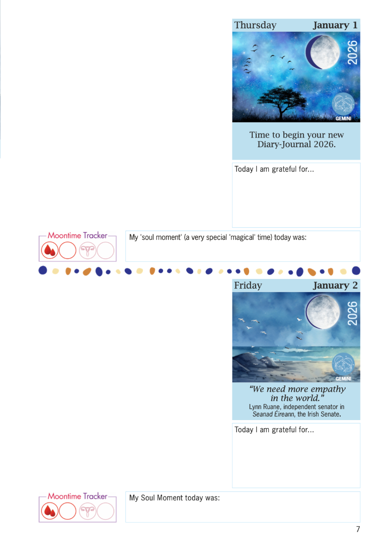 The 2026 Diary-Journal by Moon Mná has arrived. Full of interesting information with illustrations throughout, this years theme dives deep into the Sacred Birds of Ireland.